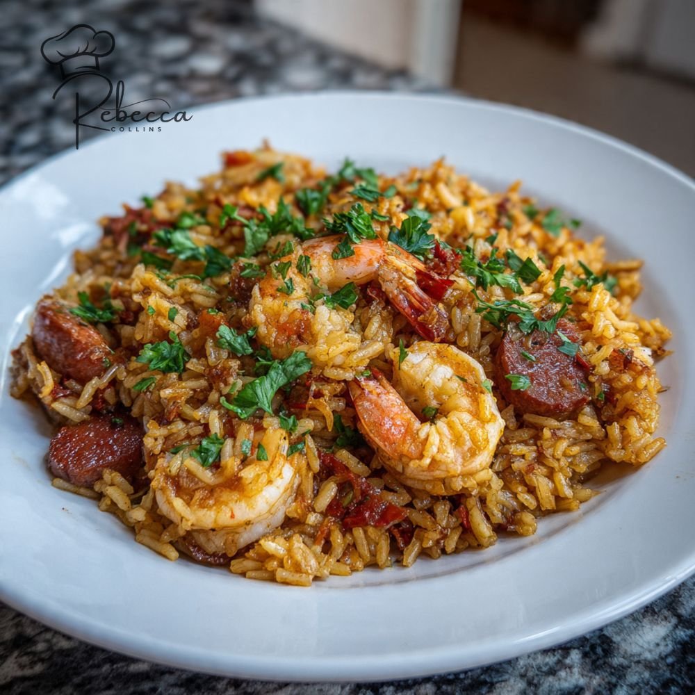 A hearty and flavorful one-pot jambalaya loaded with smoky andouille sausage, tender chicken, and plump shrimp. Packed with the bold flavors of the Holy Trinity, Cajun spices, and long-grain rice, this Louisiana classic is pure comfort in a bowl.