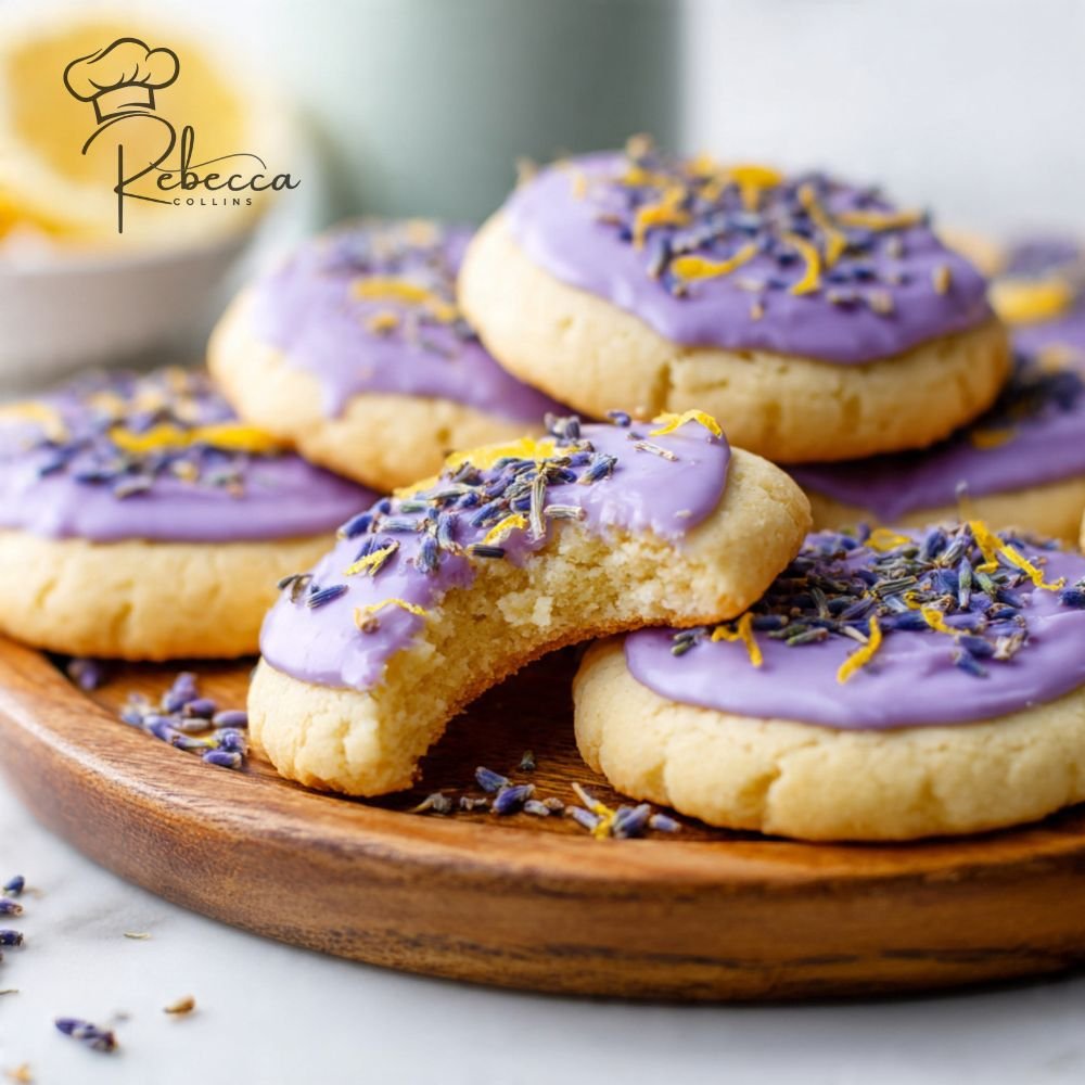 Buttery shortbread cookies infused with bright lemon zest and delicate culinary lavender. These elegant cookies are perfectly crisp, lightly sweet, and finished with a dreamy lemon lavender glaze. Ideal for tea parties, bridal showers, or a moment of floral bliss.